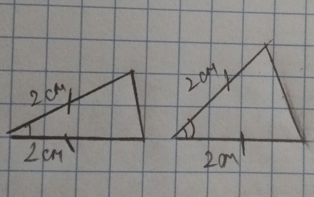 (Нарисуйте) Приведите пример треугольника, у которого две одинаковые стороны и угол между ними и две одинаковые стороны и угол между ними другого треугольника не равны