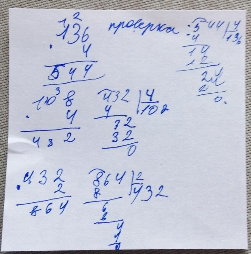 Вычисли, выполни проверку. 136*4 108*4 432*2 504:3 108:3 508:2 445 + 58 680 - 497 чо столбиком пжжж помогитеее, ДАМ 90 баллов