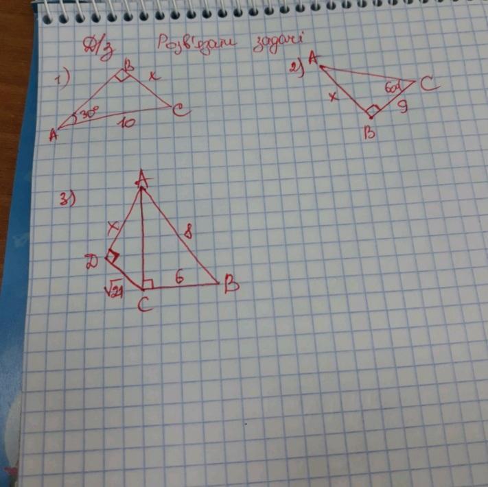 1) х=ВС=1/2 АС по свойству катета, лежащего против угла 30°