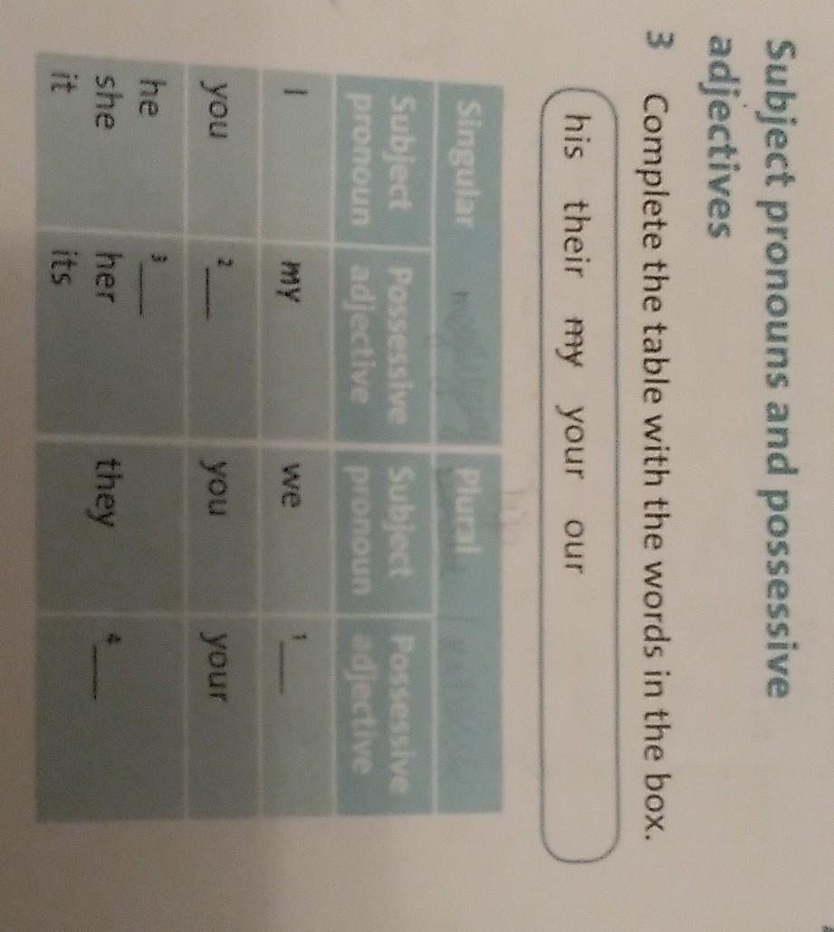 Subject pronouns and possessive adjectives 3 Complete the table with the words in the box.