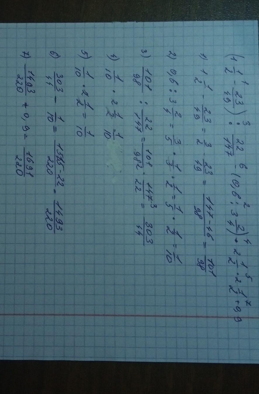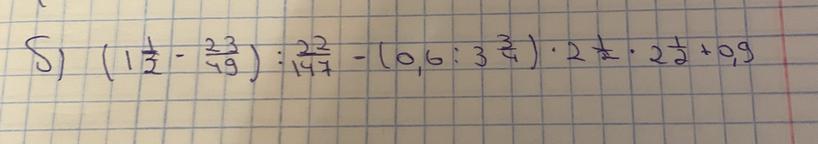 (1 1/2 - 23/49): 22/147 - (0,6 : 3 3/4) * 2 1/2 + 0.9