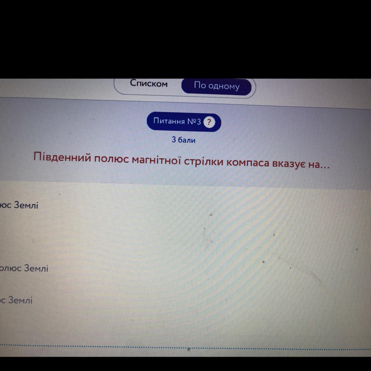 ПОМОГИТЕ ПОЖАЛУЙСТА ОЧЕНЬ СРОЧНО НУЖНО!!!!!) БУДУ ОЧЕНЬ БЛАГОДАРНА Південний полюс магнітної стрілки Компаса вказує на...