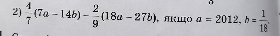 4/7(7a-14b)-2/9(18a-27b) = 4a-8b-4a+6b = -2b = -2*1/18 = -1/9.