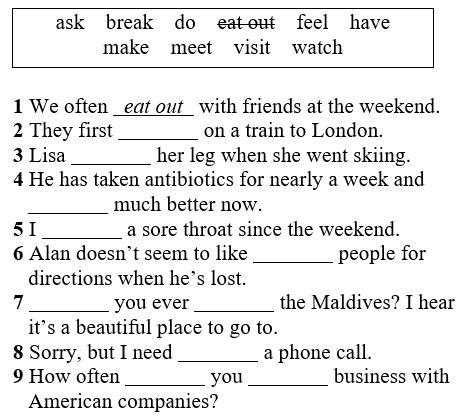 Complete the sentences with the correct form of the verbs in the box.