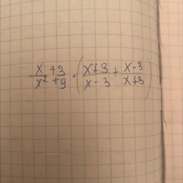 Х+3/х+9 × (Х+3)^2+(х-3)^2/(х-3)×(х+3)= 1/х+9×(х+3)^2+(х-3)^2/х-3=(х+3)^2+(х-3)^2/(х+9)×(х-3)=х^2+6х+9+х^2+6х+9/х^2-3х+9х-27=2х^2+18/х^2+6х-27