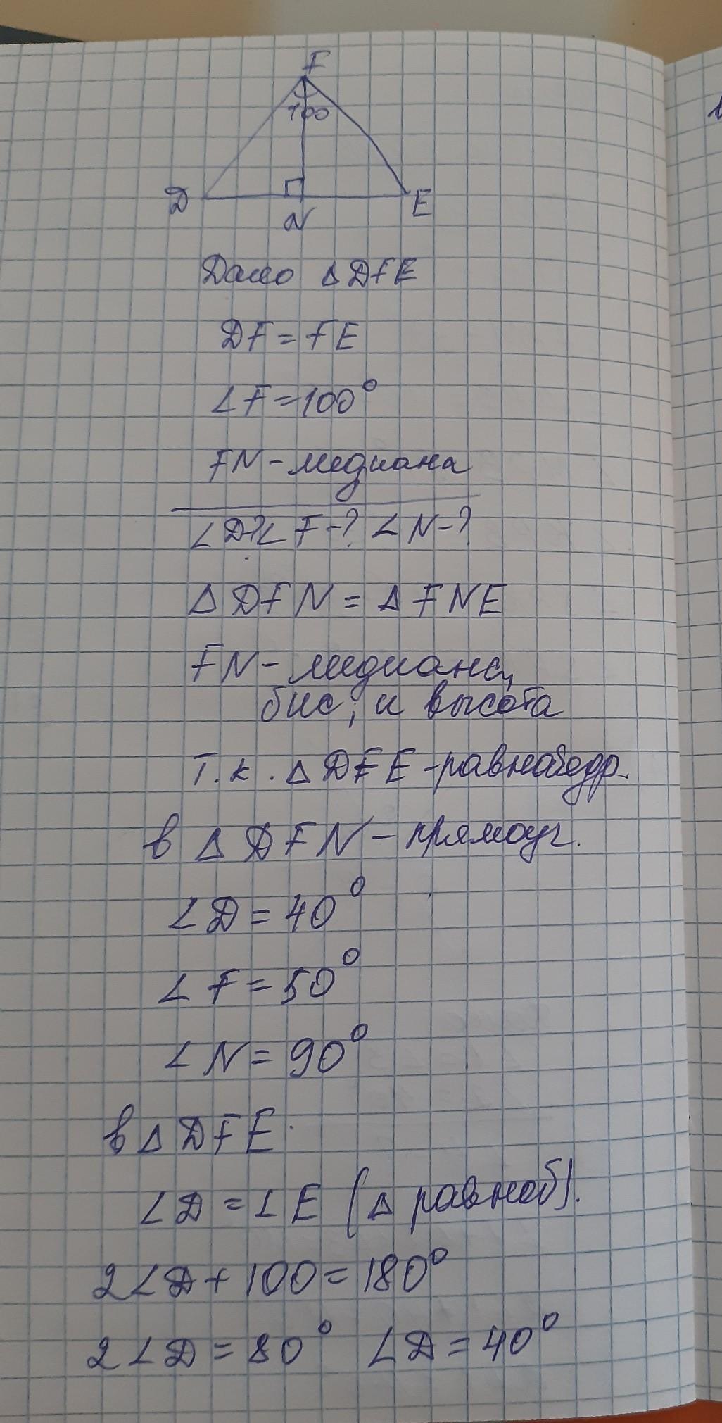 FN медиана Знайдіть кути трикутника DEFN Срочно пж даю 40 баллов