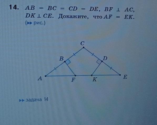 Они равны потому что треугольник АВF =треугольнику KDE по 2 признаку равенство треугольника
