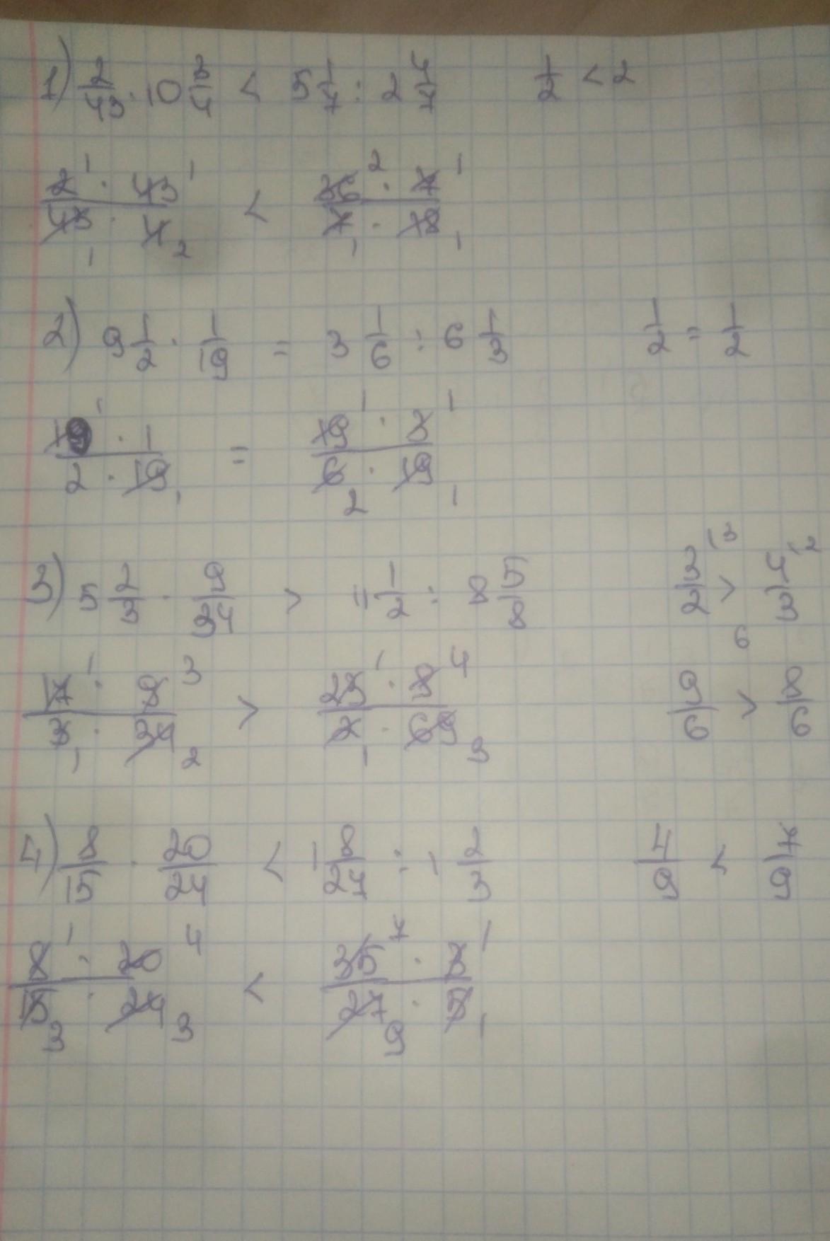 1) 2/43•10 3/4<5 1/7:2 4/7