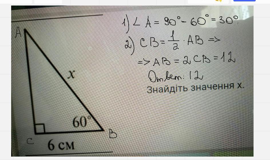 1) угол а равен 30 градусов (сумма острых углов в прямоугольном треугольнике равна 90 градусов)