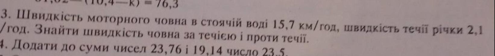 15,7-2,1=13,6 (км/год)-швидкість проти течії