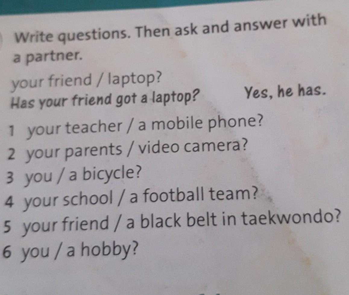 1) Has your teacher got a mobile phone? Yes, he has (или Yes, she has)