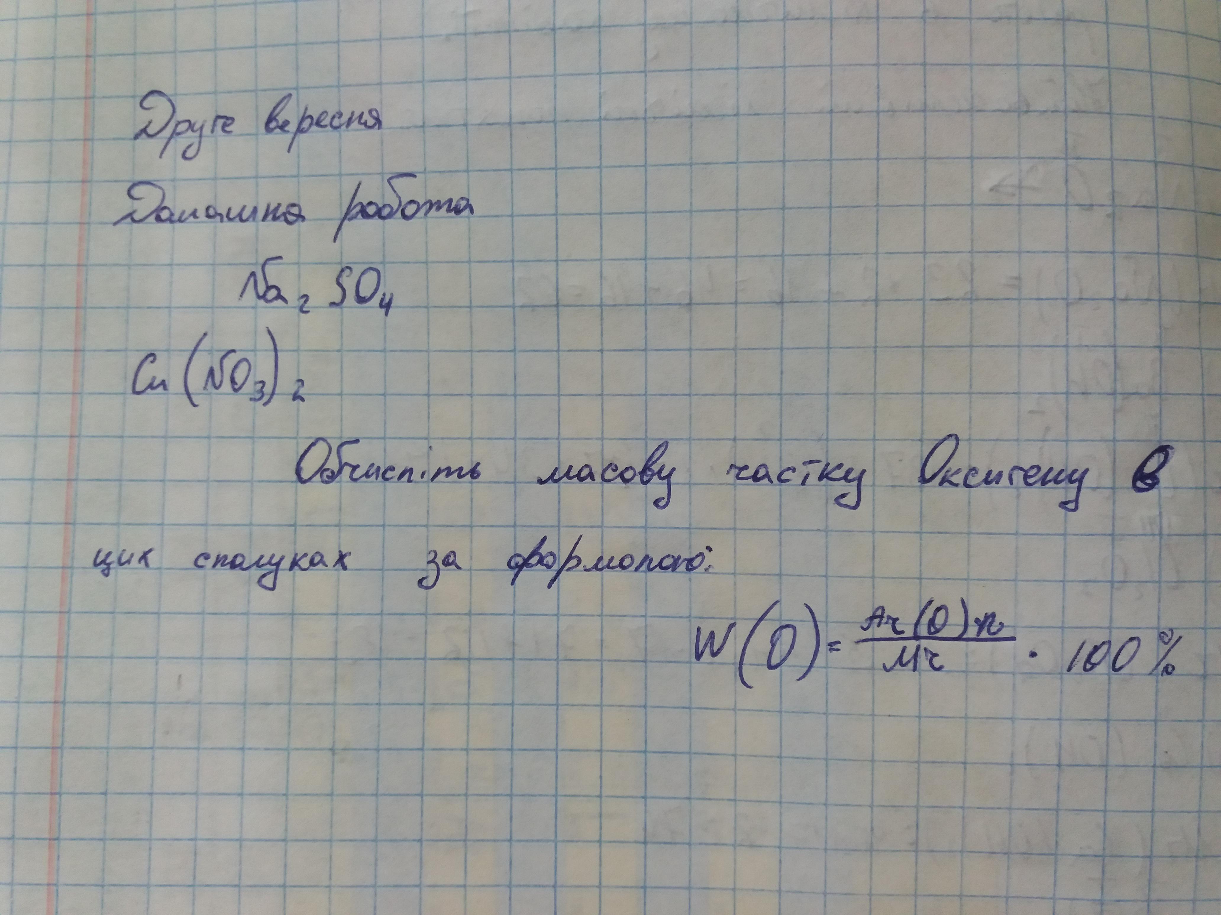 w(O)=Ar(O)/Mr(Cu(NO3)2)*100%=6*16/187*100%=51.3 % содержание кислорода в нитрате меди(2)