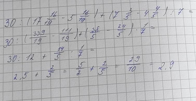 2) 30 : 12 = 30/12 = 5/2 = 2,5