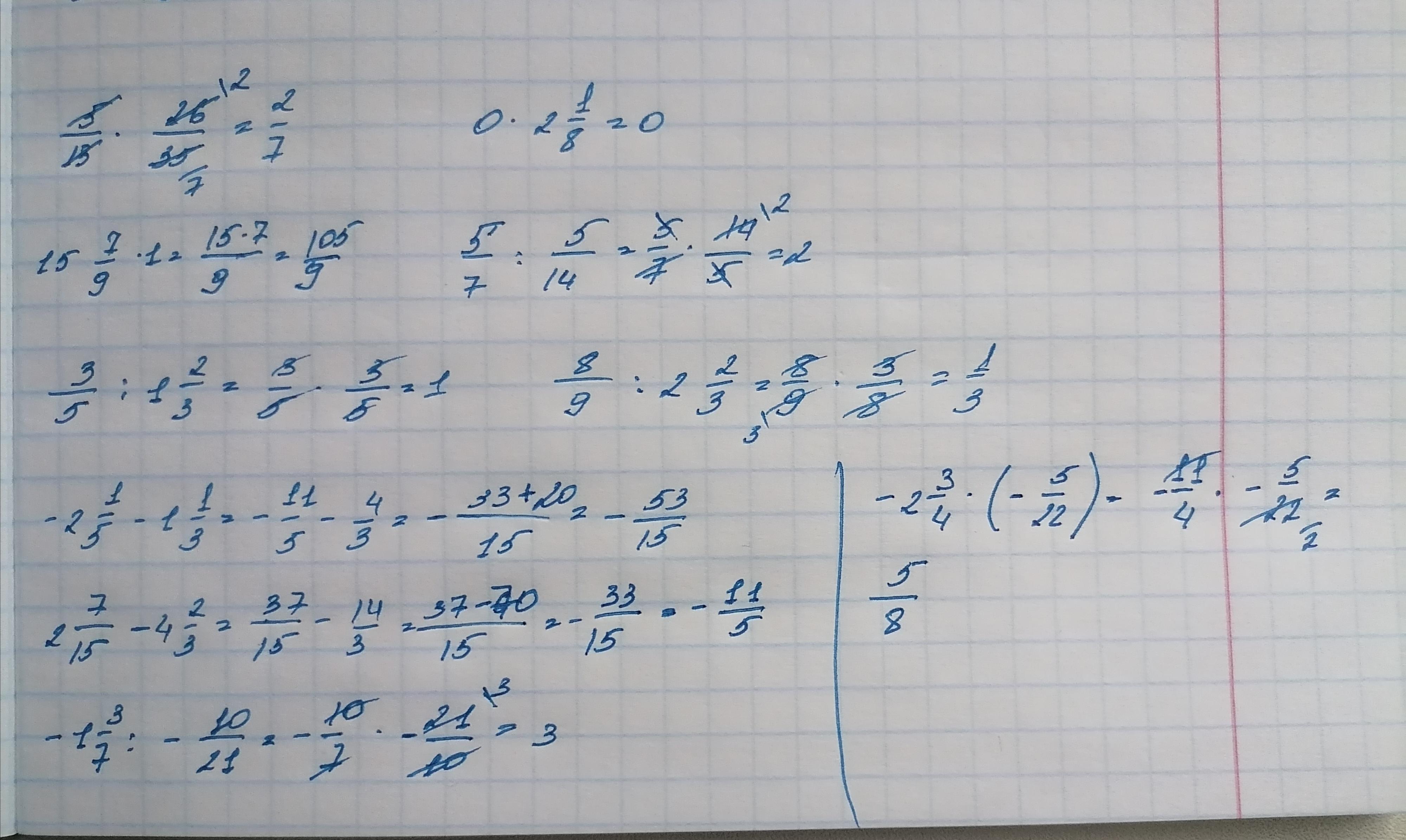 Ответ:1) 2/7 2)15 7/9 3)0 4)2 5)9/25 6)16/63