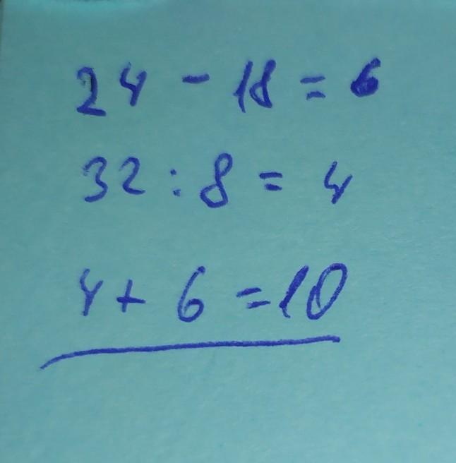 (24 - 18) + (32 : 8) = 6 + 4 = 10