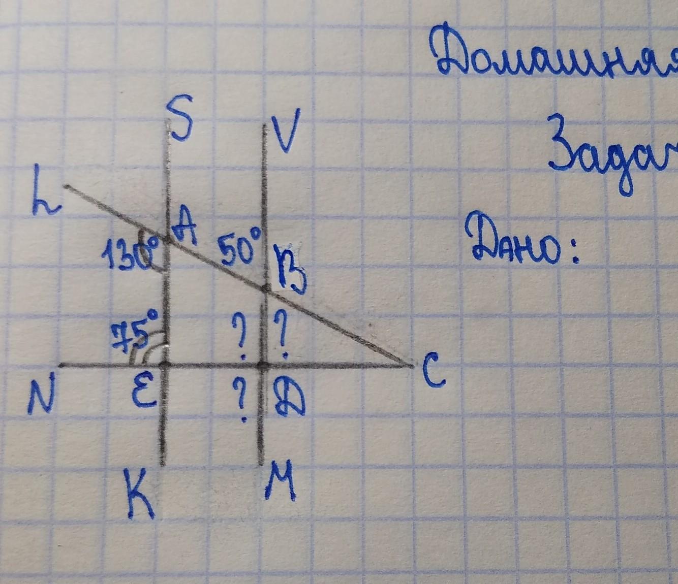 <SAL+<ABV=130°+50°=180°. отсюда следует, что SK||VM, LC- секущая.