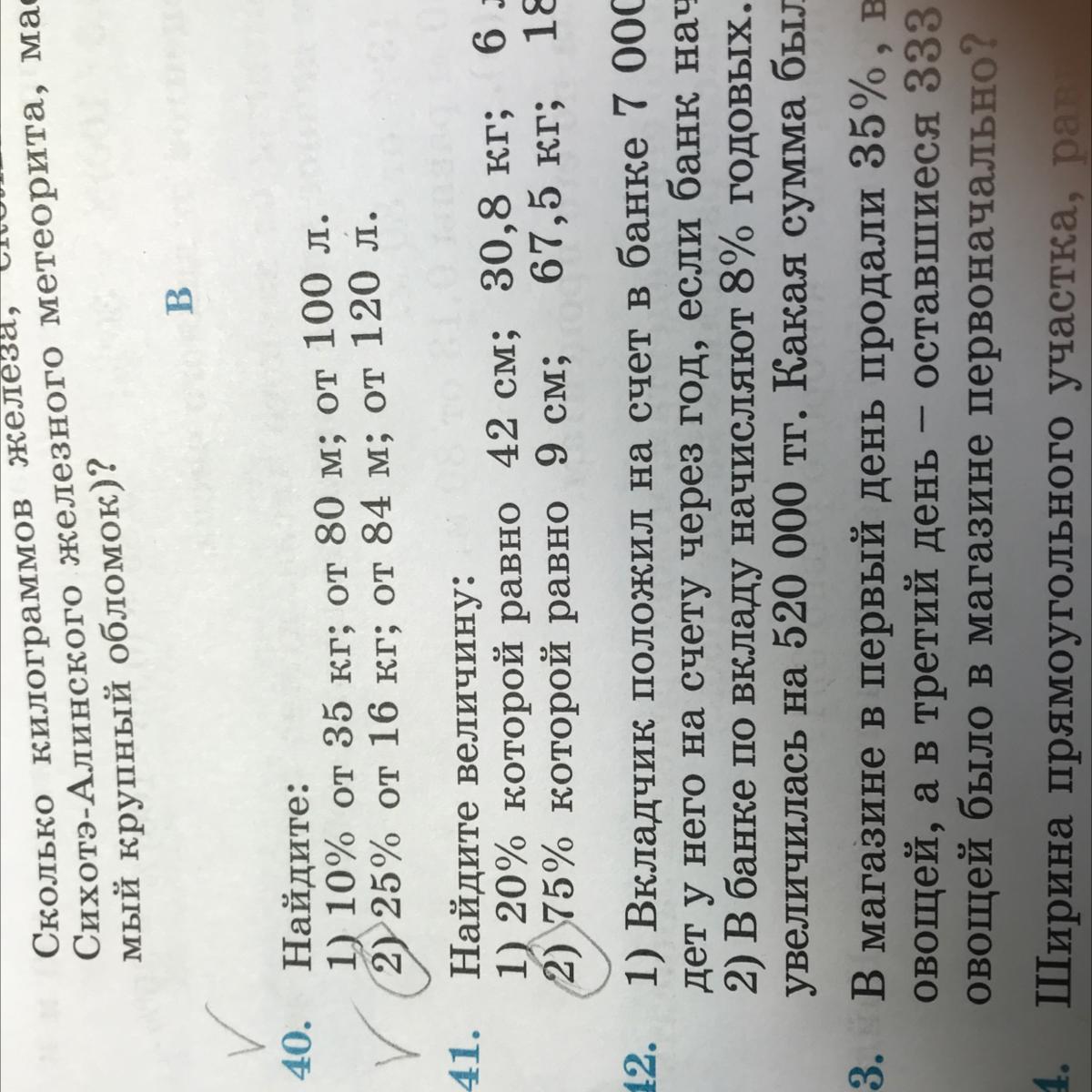 1) 10% от 35 кг; от 80 м; от 100 л.