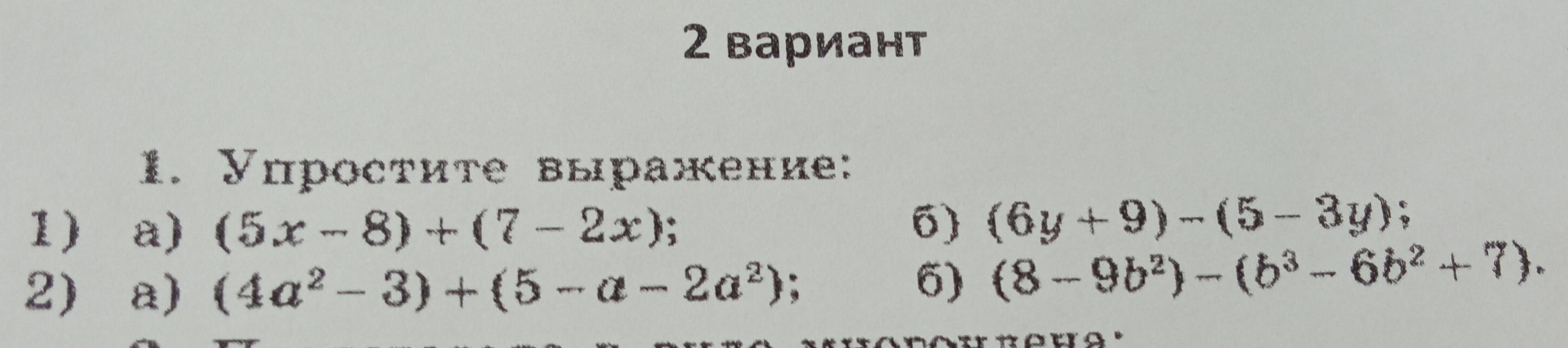 1)\ \ (5x-8)+(7-2x)=5x-8+7-2x=(5x-2x)+(-8+7)=3x-1\\\\b)\ \ (6y+9)-(5-3y)=6y+9-5+3y=(6y+3y)+(9-5)=9y+4\\\\\\2)\ \ (4a^2-3)+(5-a-2a^2)=4a^2-3+5-a-2a^2=\\\\=(4a^2-2a^2)-a+(-3+5)=2a^2-a+2\\\\b)\ \ (8-9b^2)-(b^3-6b^2+7)=8-9b^2-b^3+6b^2-7=\\\\=(8-7)+(-9b^2+6b^2)-b^3=1-3b^2-b^3