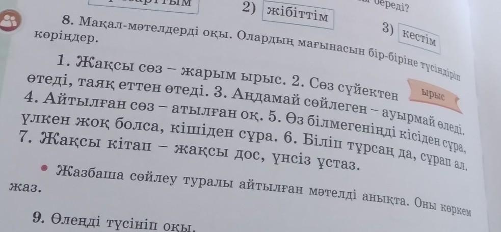 - Жақсы сөз - жарым ырыс: Егер сен тек жақсы сөздер айтсан, сені бәрі құрметтейді.