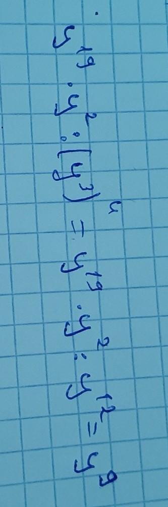 у¹⁹×у²÷(у³)⁴ = у¹⁹×у²÷у¹²=у⁹