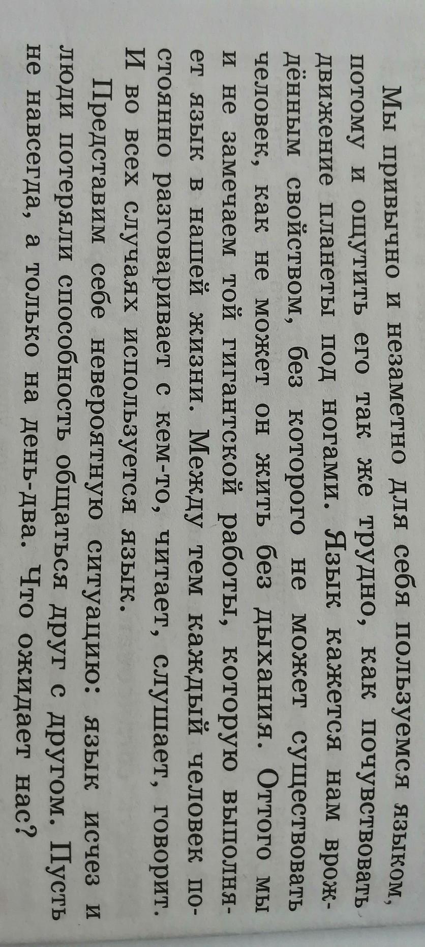 "Прочитайте текст. О чём он? Напишите о том, что могло бы произойти, если бы наш язык исчез и люди лишились общения. Какое ещё значение слова язык вы знаете?