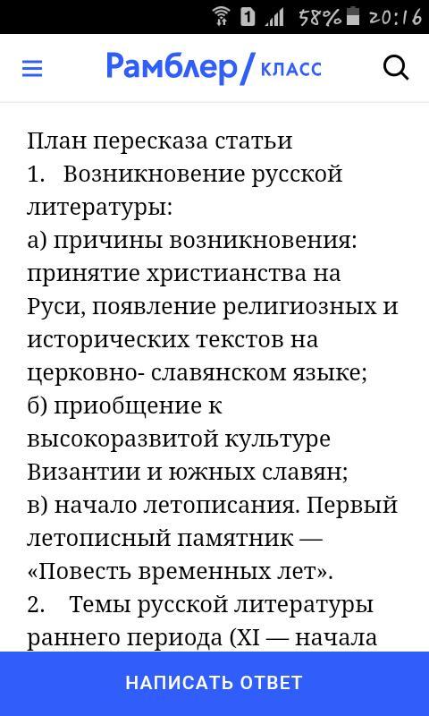 письменно составьте подробный план текста статьи учебника,по плану и подготовьте устный пересказ,приведите в качестве примеров произведения древнерусской литературы.