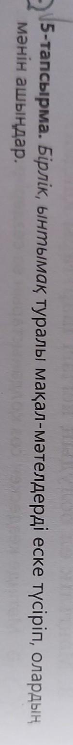 5-тапсырма. Бірлік, ынтымақ туралы мақал-мәтелдерді еске түсіріп, олардың мәнін ашыңдар.