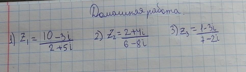 чтобы выполнить деление комплексных чисел, надо домножить числитель и знаменатель на выражение, сопряженное к знаменателю. ну а потом в знаменателе получится целое число и полученную дробь привести к виду комплексного числа
