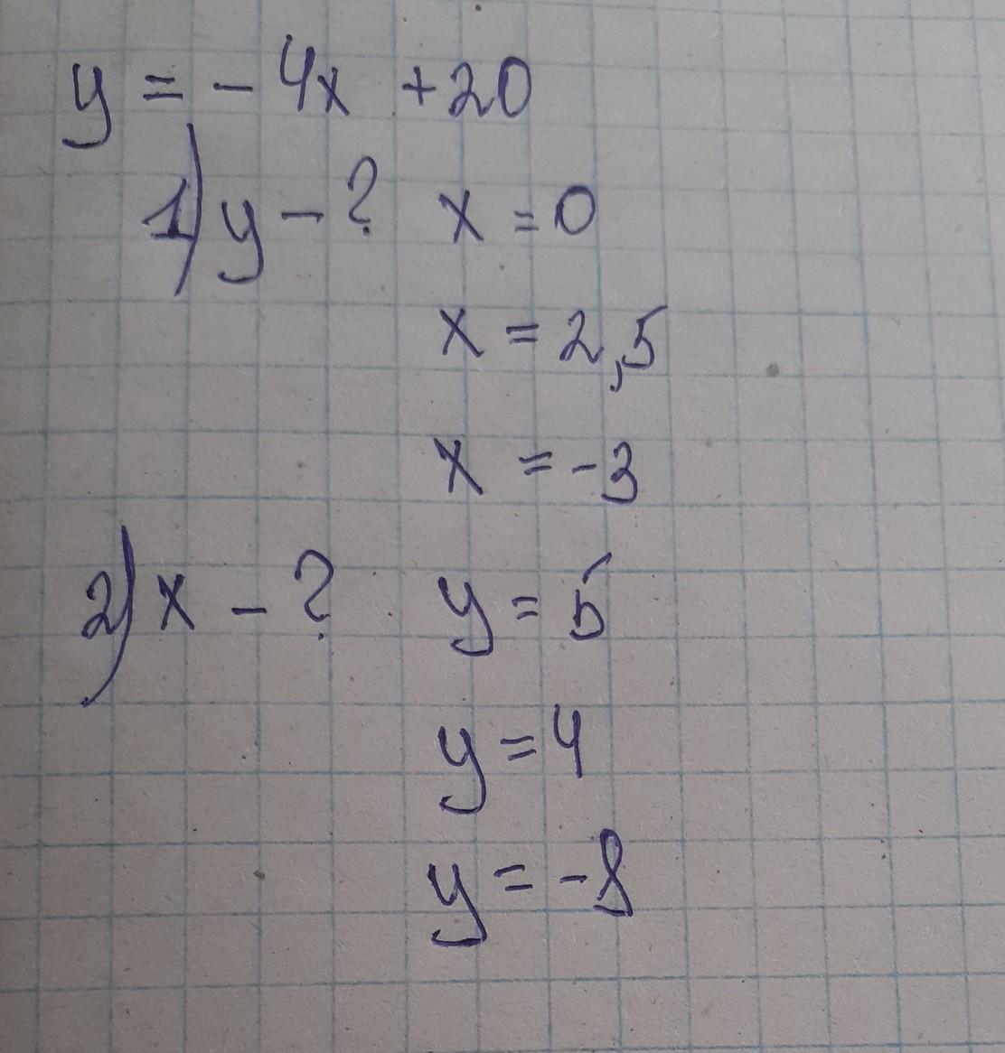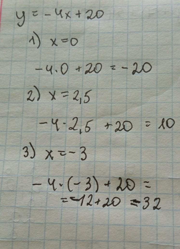-4 × 0 + 20 = 0 + 20 = 20, а не -20.