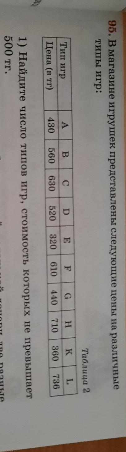 Если задача просто найти количество типов не превышающих 500тг., то ответ 4.