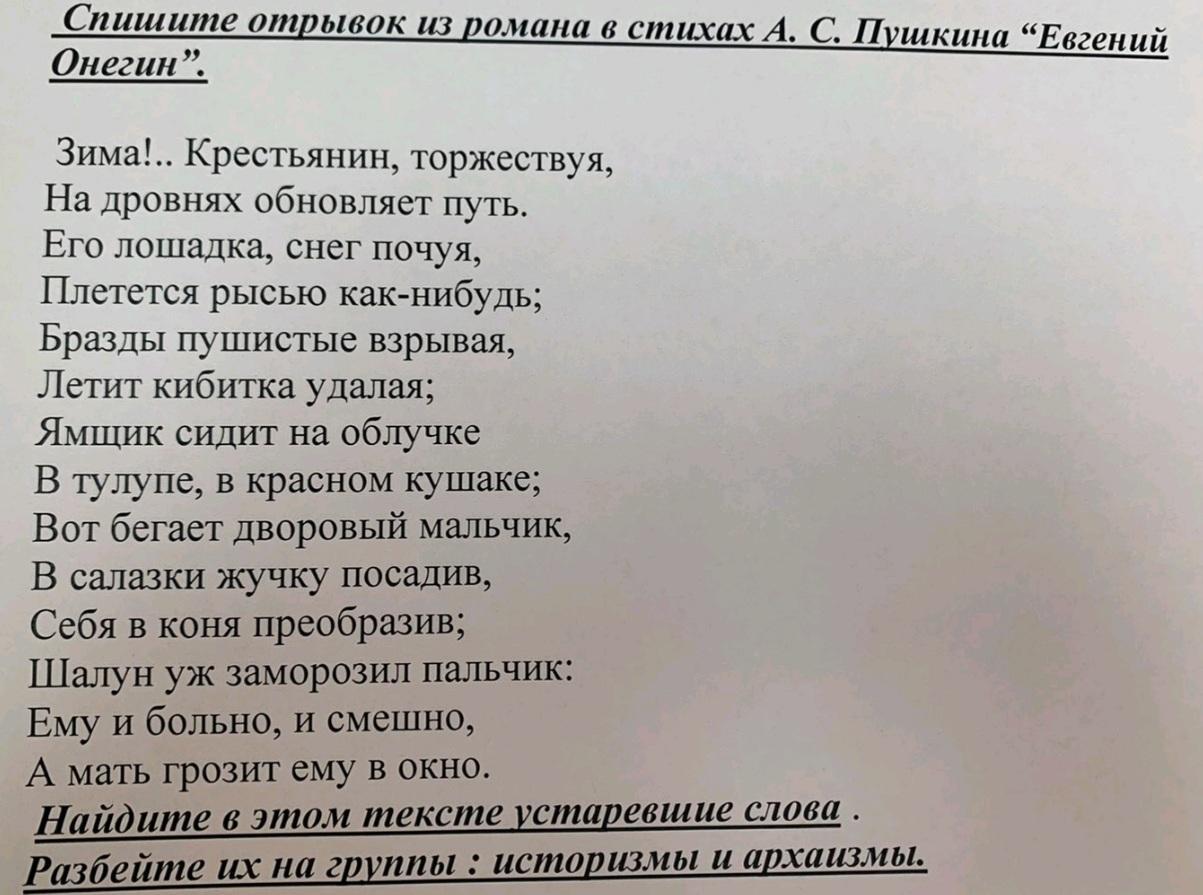 Архаизмы: бразды, удалая, салазки, преобразив.