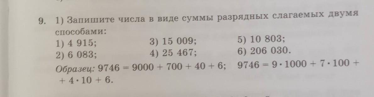 4000+900+10+5, 6000+80+3, 10000+5000+9, 20000+5000+400+60+7, 10000+800+3, 200000+6000+30