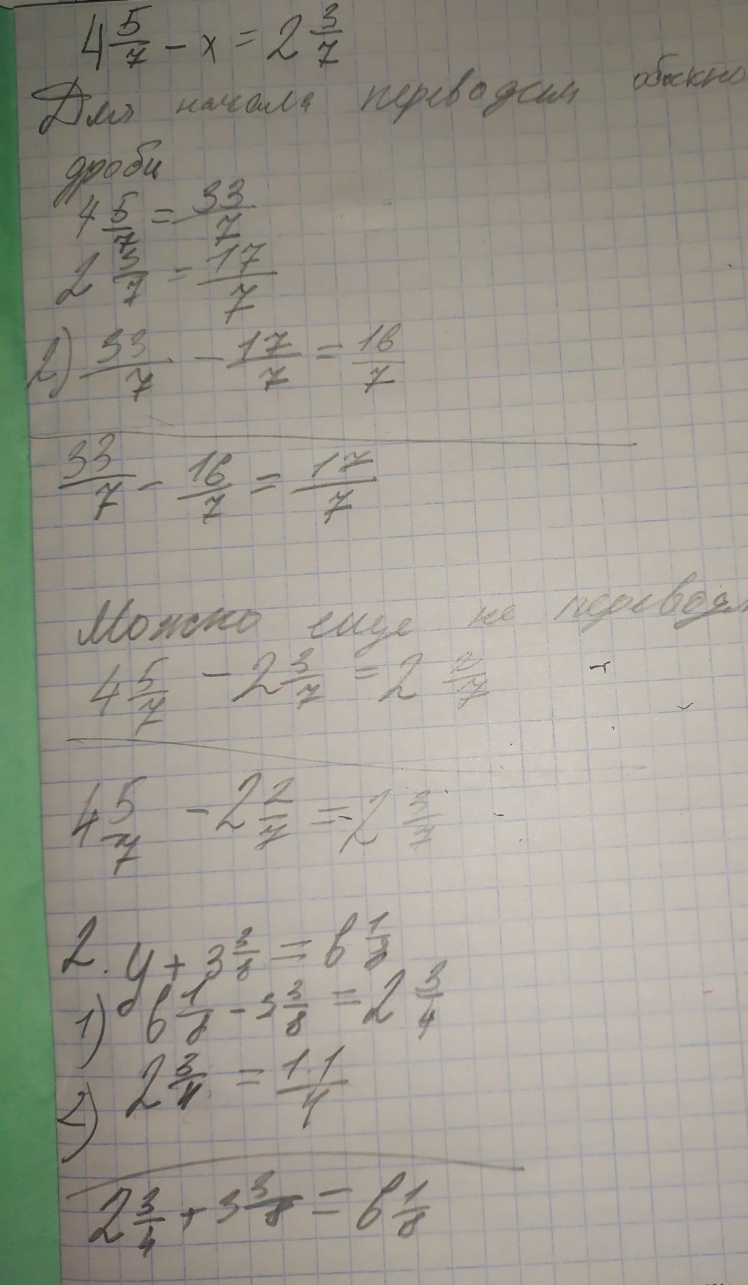 а) 4 5/7 - x = 2 3/7