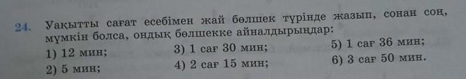 6) 3 ч 50 мин=3 + 50/60=3 5/6 часа.