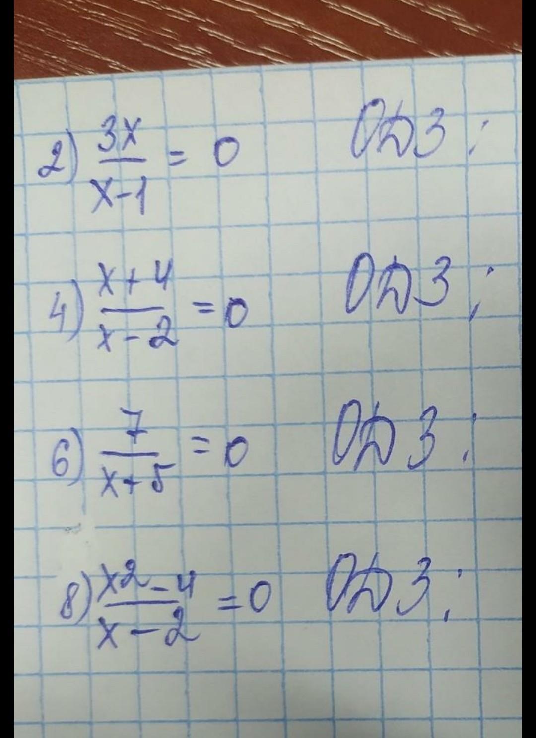 смотри, ты умножаешь на то, что под дробной чертой обе части, если на неё умножить ноль, он останется нулем. то есть тебе нужно решить только верхнюю часть. к примеру в первом будет просто 3х=0, без нижней части.