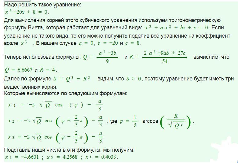 x³ + 8 = 20x. Получаем кубическое уравнение: