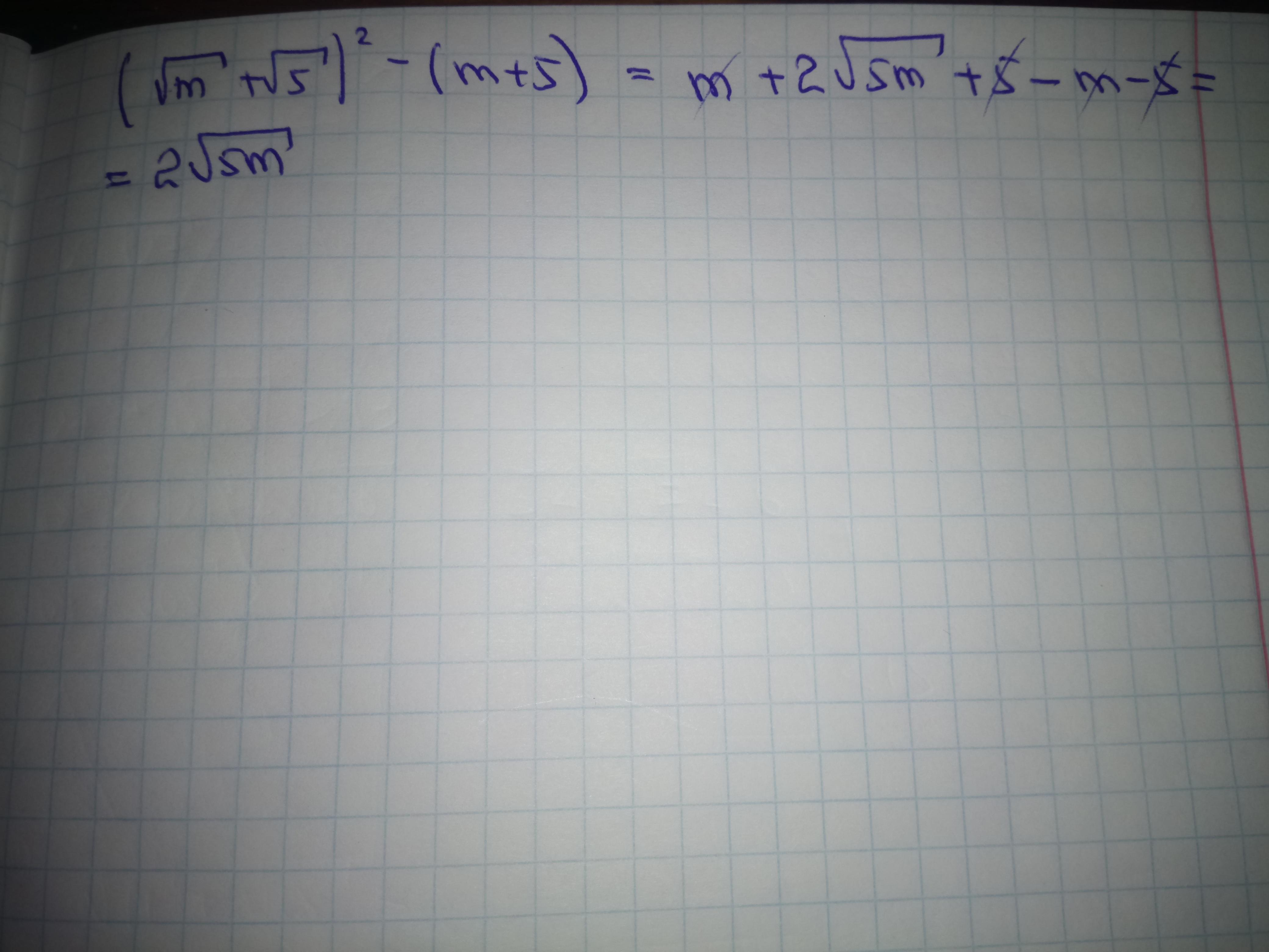 (√m+√5)² -(m+5) = m+2√(5m) +5 - m - 5 = 2√(5m)