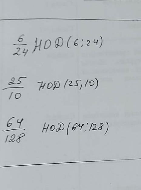 нод это наибольшее число на которое делятся и знаменатель, и числитель. находим это число, а потом делим каждое число в дроби на нод
