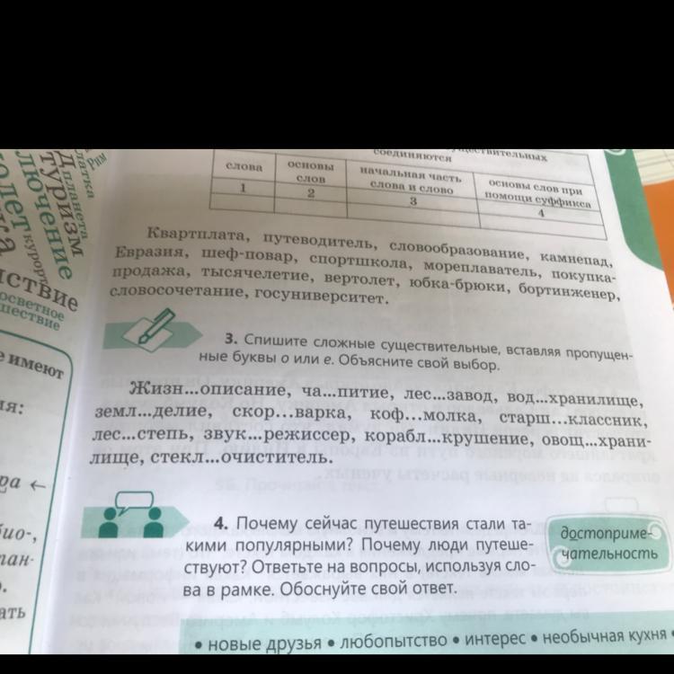 спишети сложные существительные вставляя пропущенные буквы о или е Объясните свой выбор Задания 3