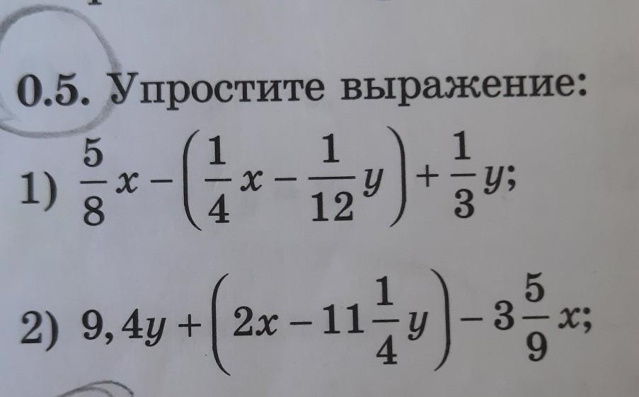 5/8х-(1/4х-1/12у)+1/3у=5/8х-1/4х+1/12у+1/3у=5/8х-2/8х+1/12у+4/12у=3/8х+5/12у