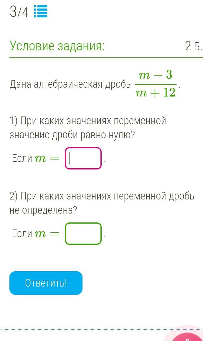 2 когда знаменатель =0, тк это невозможно делить на 0