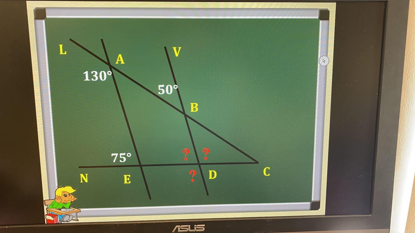 и последний неизвестный угол равен 105, как один из вертикальных углов