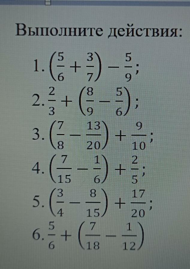 1) 5/6 + 3/7 = 35/42 + 18/42 = 53/42 = 1. 11/42