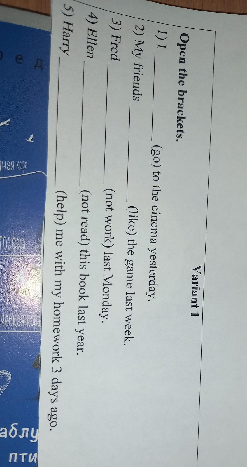 1. Went. 2.Liked. 3Did not work. 4. Did not read.5 Helped