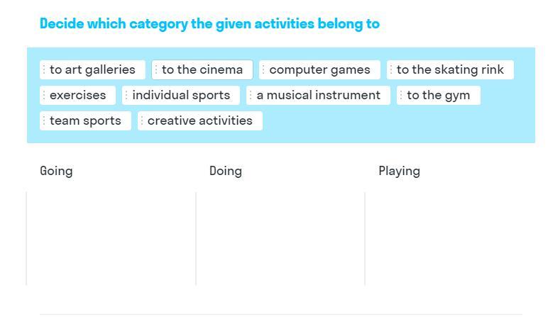 going: to art galleries, to the cinema, to the skating rink, to the gym