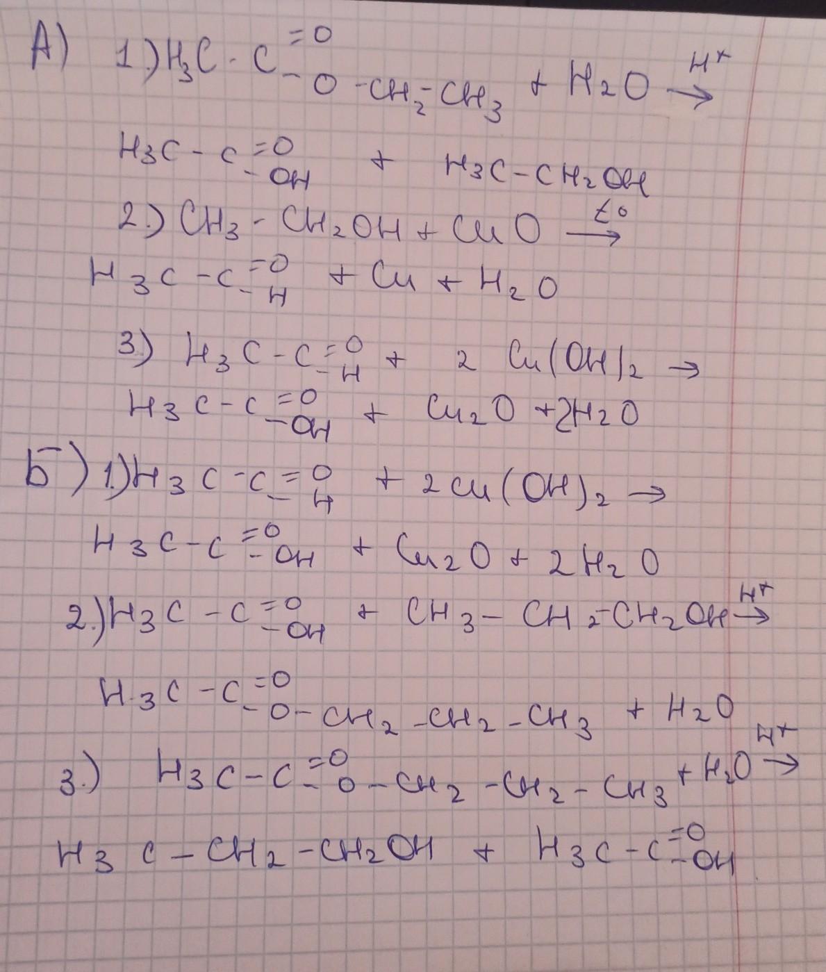 Б) этаналь →уксусная кислота → пропилацетат → пропанол