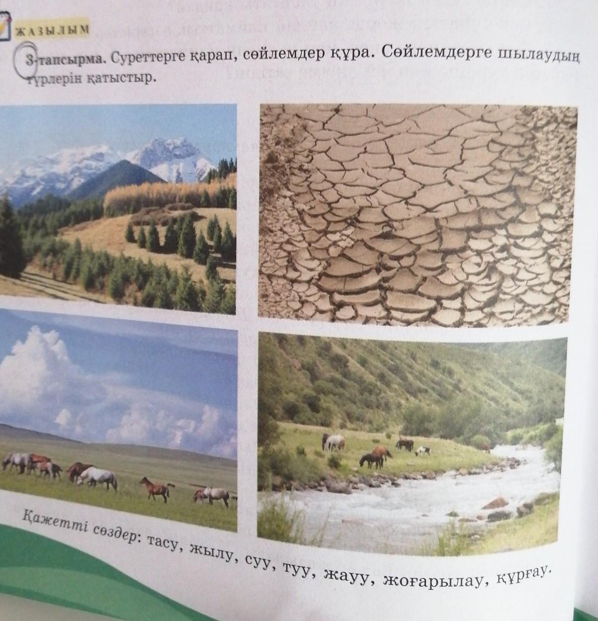 ЖАЗЫЛЫМ 3-тапсырма. Суреттерге қарап, сөйлемдер құра. Сөйлемдерге шылаудың түрлерін қатыстыр. ум