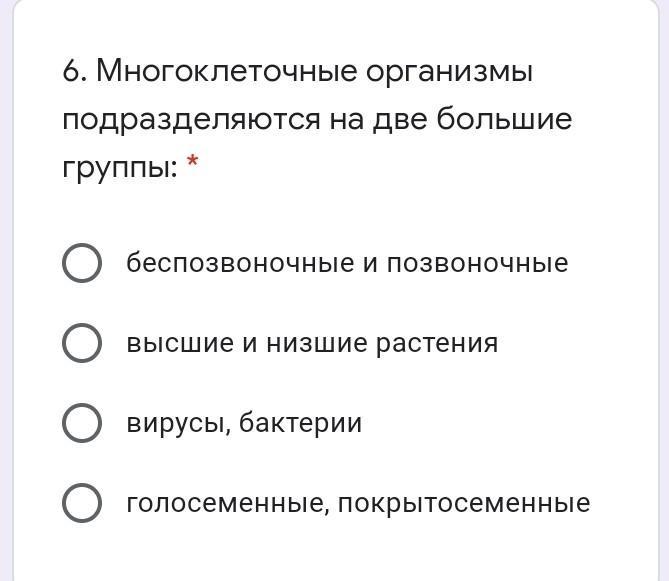 Многоклеточные организы делятся на такме 2 большие группы как - беспозвоночные и позвоночные;