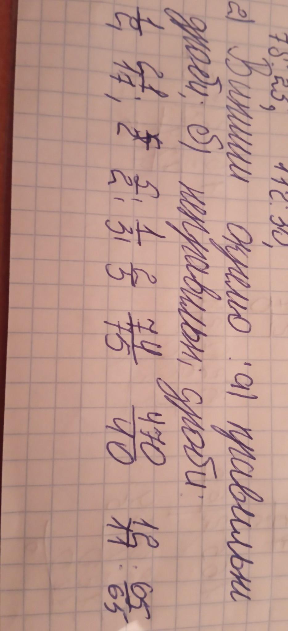 а) 1/9, 1/3, 2/5, 74/75 б) 21/17, 5/2, 470/40, 12/11, 65/65