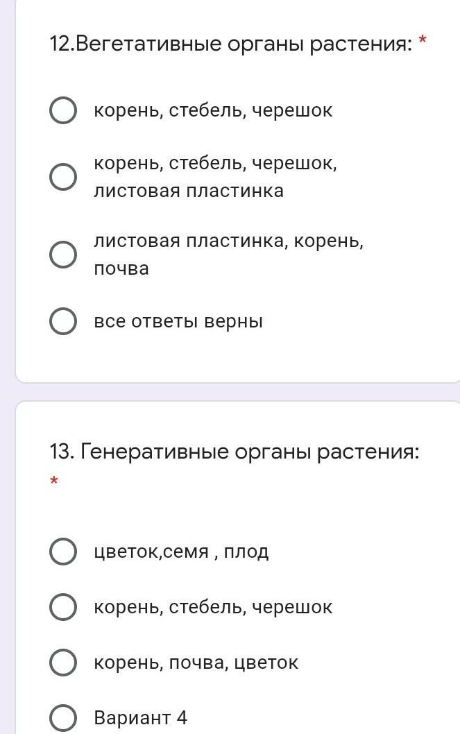 В последущих вариантах представлены вегетативные органы и одним из перечисленных является почва, которая, как было выше сказанно никак не может относиться к органам растения.
